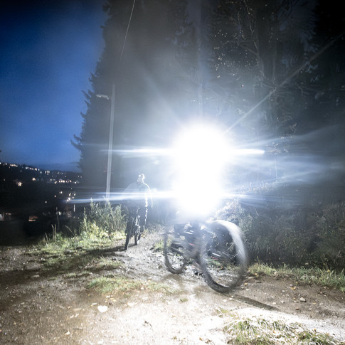 Det blir direkt mer spännande att cykla när mörkret faller på och alla tänder sina lampor. Lampor på styren och på hjälmar lyste upp tillvaron. Stigarna känns tajtare och farten upplevs mer påtaglig.